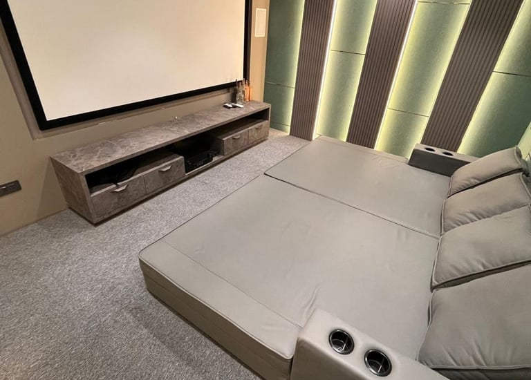 At our company, we specialize in creating unique home cinema experiences that are personalized to suit the individual tastes and preferences of our clients. By integrating top-quality equipment such as Epson and BenQ home cinema projectors, we ensure stunning visuals that enhance the viewing experience. To complement the visuals, we offer premium Hermes audio speakers, delivering crisp and immersive sound. Additionally, our acoustic panels are expertly designed to optimize sound quality and minimize echo, providing an unparalleled cinematic atmosphere. Whether you're looking to build a dedicated home theater or upgrade your existing setup, our team is committed to delivering excellence in both design and functionality, making your home cinema dreams a reality. Experience the perfect blend of technology and artistry tailored just for you.